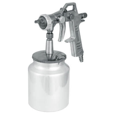 A szívótartállyal ellátott festékszóró pisztoly egy rendkívül sokoldalú szerszám, amely nagyban megkönnyíti a festékek és lakkok felvitelét a ház körüli, valamint a műhelyben és garázsban végzett munkák során. A szívótartály rugalmas felhasználást tesz lehetővé anélkül, hogy kifolyna a tartalma. Az állítható sugár (pont vagy széles) segítségével mindig az elvégzendő munka és felület tulajdonságaihoz állíthatja a szórásképet. A szórófejet egyetlen kézmozdulattal elforgatva vízszintes helyzetbe állíthatja a függőleges sugarat. A szórásmennyiség a festékmennyiség-szabályozásnak köszönhetően finoman szabályozható. A nagy méretű, 1 liter űrtartalmú tartály lehetővé teszi, hogy nagyobb felületeken is huzamosabb ideig, megszakítások nélkül dolgozzon. A gyorscsatlakozó aljzathoz szükséges levegőcsatlakozó-szelepet megtalálja a gyári csomagolásban.
